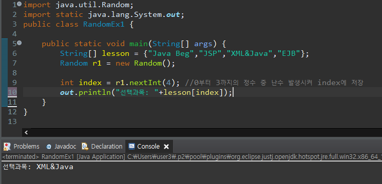 · float : nextFloat() float형 자료에 따른 자료를 반환하게 되며 0.0~1.0 사이의 값 반환