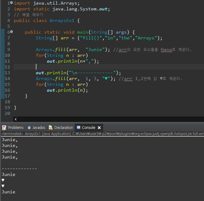 static void : fill(Object[]a, Object val), fill(Object[] a, int fromIndex, int toIndex, Object val)