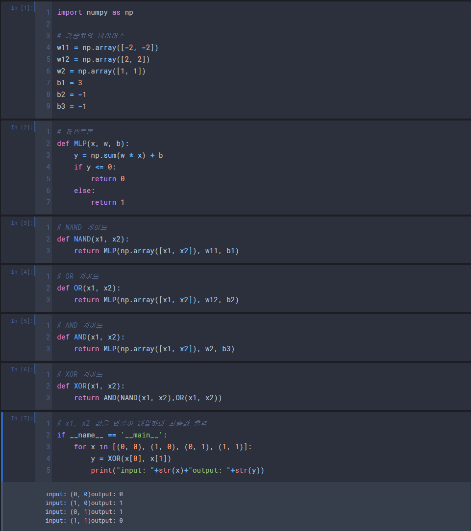 - 다중 퍼셉트론 XOR문제