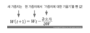 3. 경사 하강법을 이용해 바로 앞 가중치를 미분값이 0에 가까워지는 방향으로 업데이트한다.