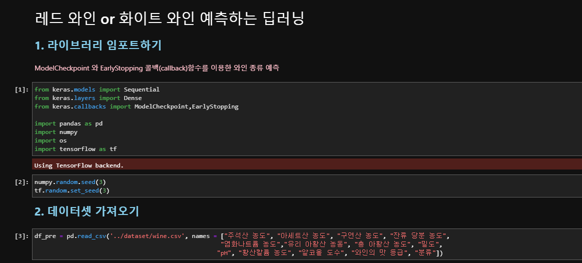 모두의 딥러닝 14장 - 베스트 모델 만들기(와인의 종류 예측하기), Early Stopping , callbacks