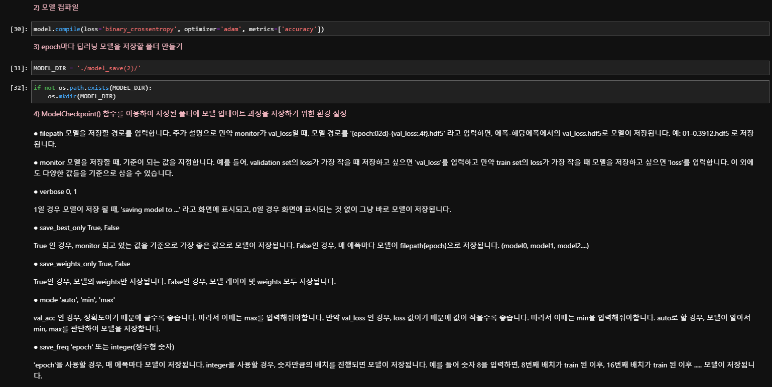 - ModelCheckpoint() : 모델이 앞서 저장한 모델보다 나아졌을 때만 학습모델 저장
