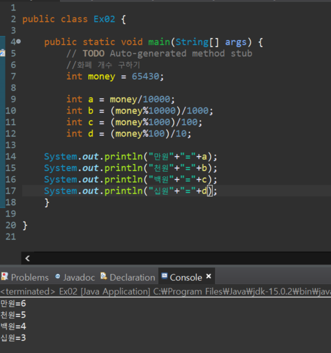 Java 연습문제(2) - 화폐 개수 구하기 본문