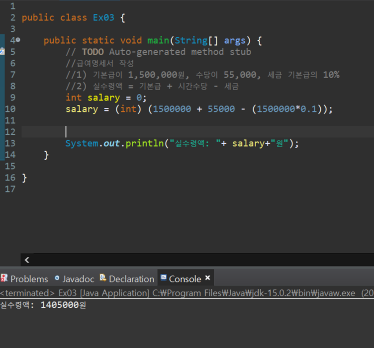 Java 연습문제(3) - 급여명세서 작성 본문