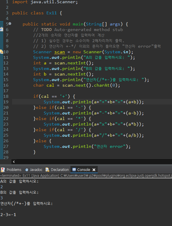 Java 연습문제(11) - 계산기 만들기 본문