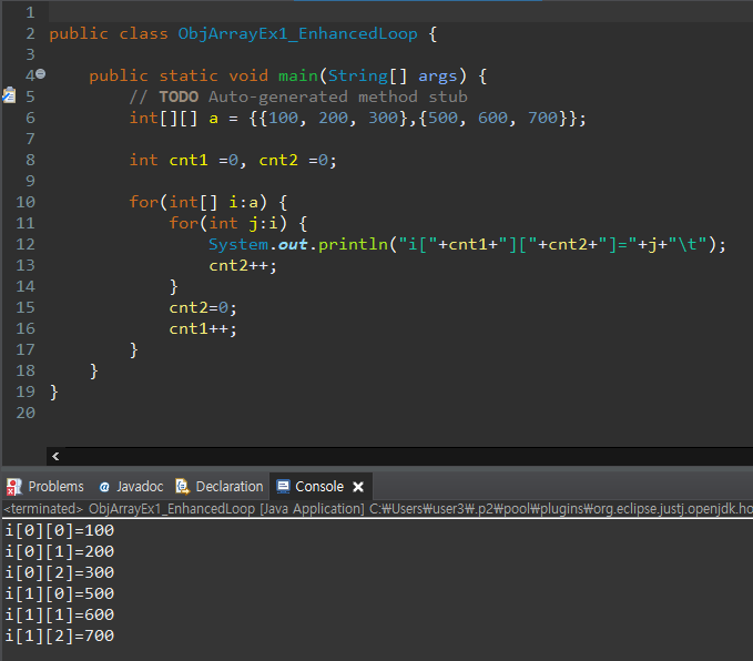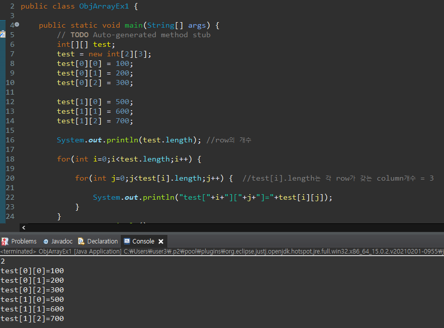 Java 다차원 배열, 고정적 길이 배열, 가변적 길이 배열, 다차원 배열 향상된 for문 활용 본문