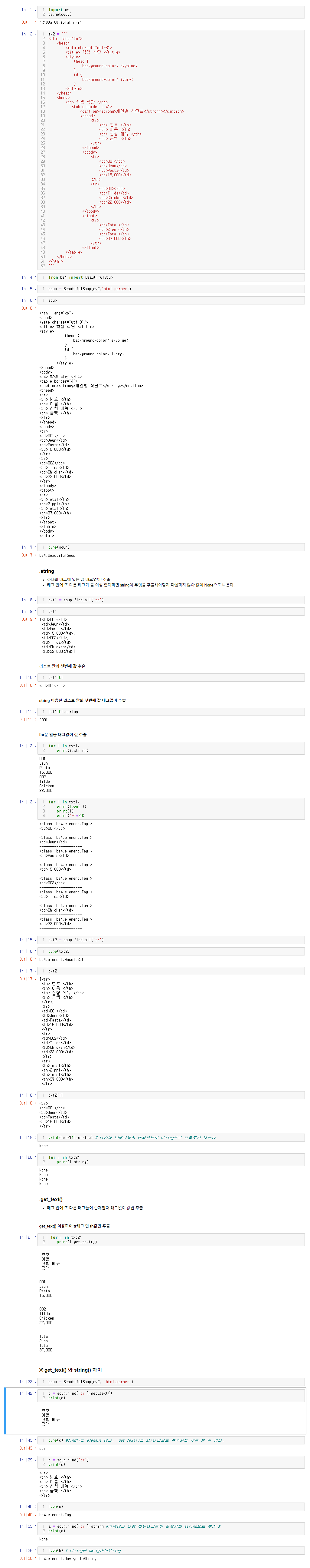 | Web Crawler, BeautifulSoup 내용생성, find(), find_all() 메소드, style 적용하기 (0) | 2021.04.02 |